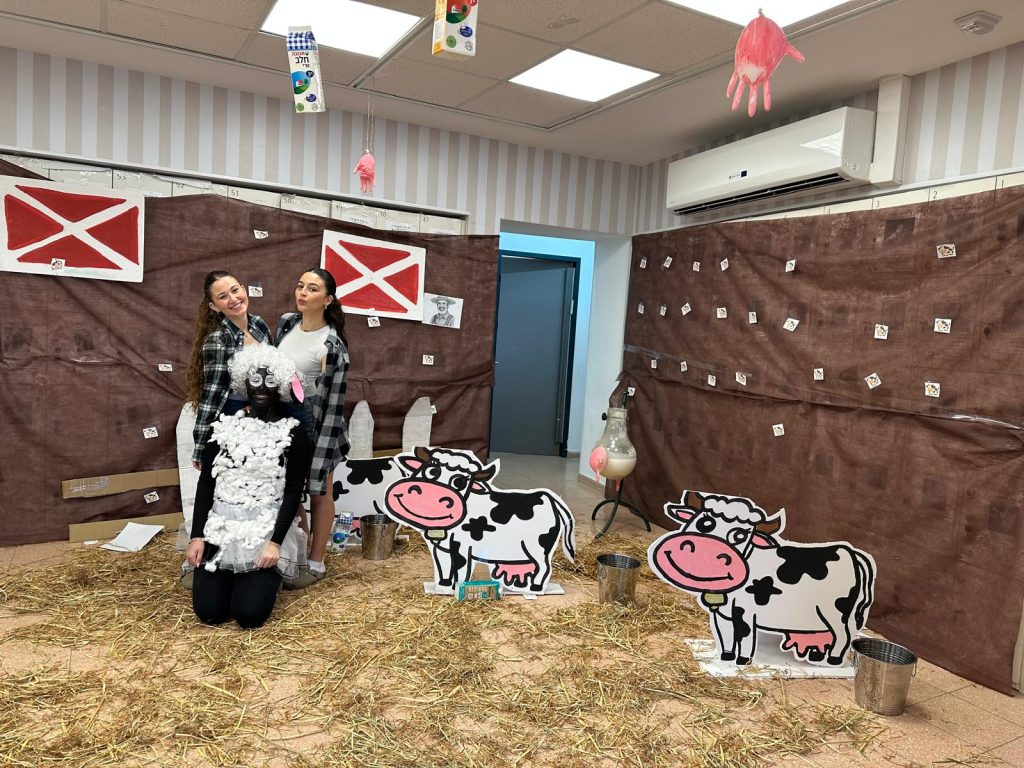תלמידות האולפנה שינו את פני המוסד והקימו "חווה" גדולה ומלאת צבע, עם שורה ארוכה של תחנות חווייתיות שהופעלו כולן על ידי הבנות: באולינג, ג’אסט דאנס, מבוך, מירוץ בימבות, אוריגמי וציורי ילדים, ציורי פנים, קישוט מסכות, שרשראות חטיפים, קליעה למטרה, פינת ספרי ילדים ועוד. בכל כיתה הוקמה תחנה אחרת, כשכל שכבה לקחה אחריות מלאה על ההפעלה, הקישוט והליווי האישי של הילדים.